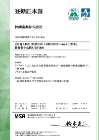 | 廃棄物再生利用事業者登録 | 神奈川県 第G00221号 |